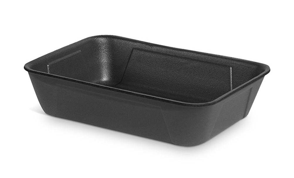 Bandeja de isopor preto pequena para comida oriental.