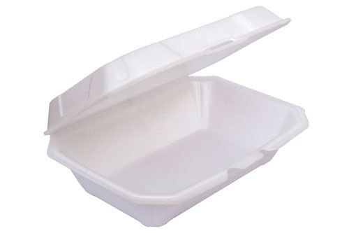Lancheira de isopor retangular que tambem serve como marmitex.